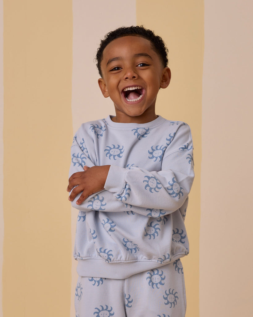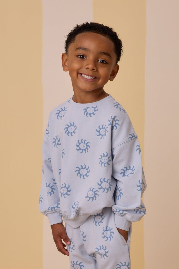 Featuring the 'suns' print on their 'light blue' hue. Dream of a clear blue Mediterranean Sea and warm sunshine in this cool print.