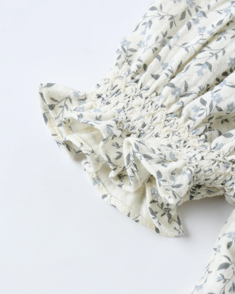 The Ada Blouse is a darling smocked top featuring balloon ruffle sleeves and a soft A-line silhouette for a sweet, feminine look.