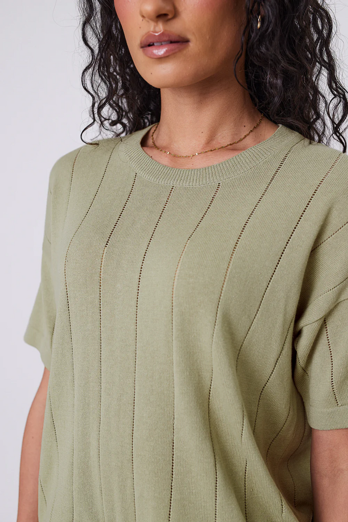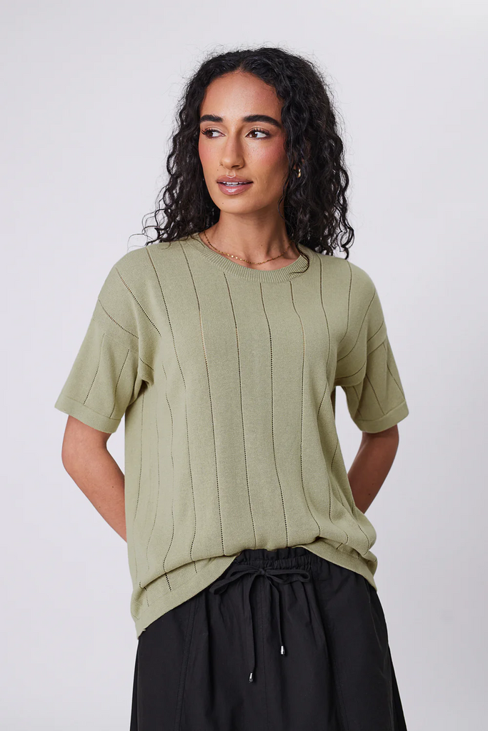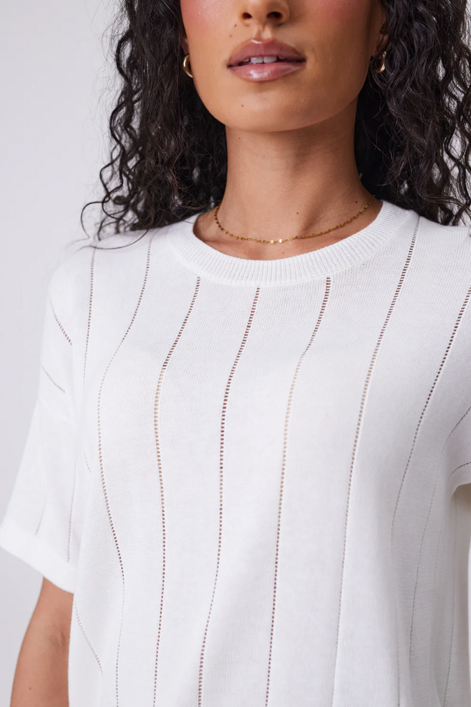 Based on a best-selling silhouette, the Ember Knit Tee is sure to become a new favourite. This knit tee features an easy, relaxed silhouette, with dropped shoulders and a boxy cut. Crafted from 100% cotton yarn for softness and breathability, and knitted in a pointelle stripe knit design for added texture. An elevated alternative to a classic tee, it’s easy to style up or down, whether with a pair of shorts or layered under a blazer for work.