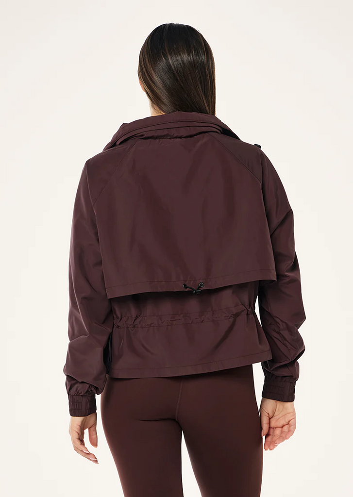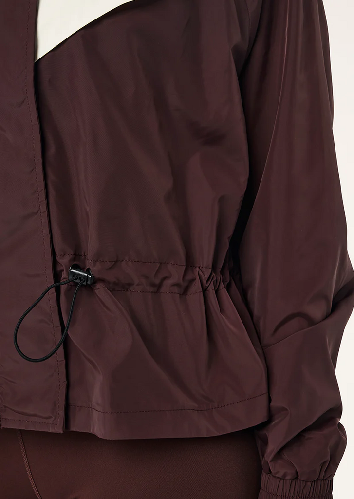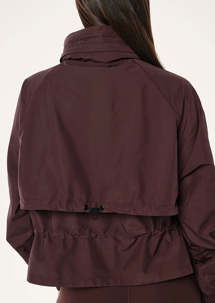 The Shelter Jacket is designed in our signature water resistant spray fabric. This cropped jacket features contrast chevron panelling, a hidden chest pocket, an elasticated drawcord waist and a packable hood. Wear your jacket over activewear for an elevated athleisure look.