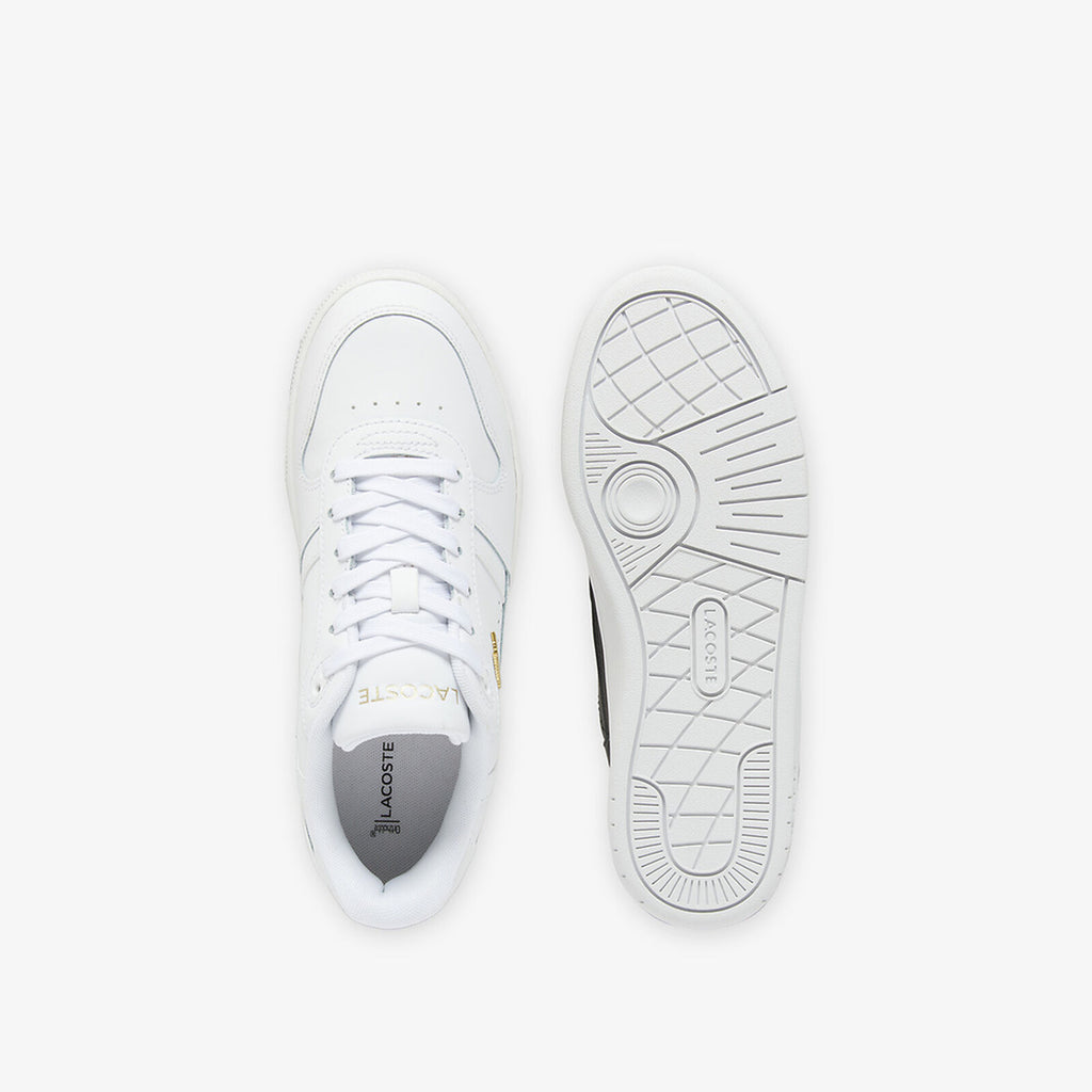 The T-Clip Set, a modern icon, refines its silhouette with a slimmer profile and a revamped TPU heel clip. Gold and metallic accents highlight Lacoste's Stealth design pack. Finished with signature branding, it's the perfect everyday shoe.