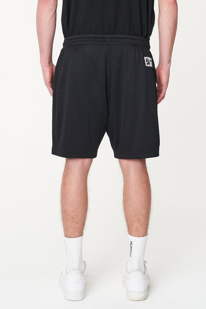 Keep your game tight with these black basketball shorts. Crafted from breathable 100% polyester mesh and featuring a boxy fit, elasticated waistband with drawcord, and stripe tape detailing, you'll stay cool and comfortable on the court! Plus, you'll look baller with the Huffer branded hardware and placement print.