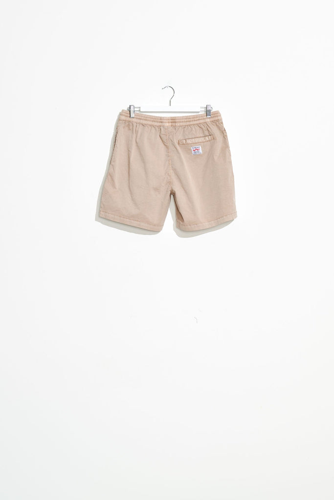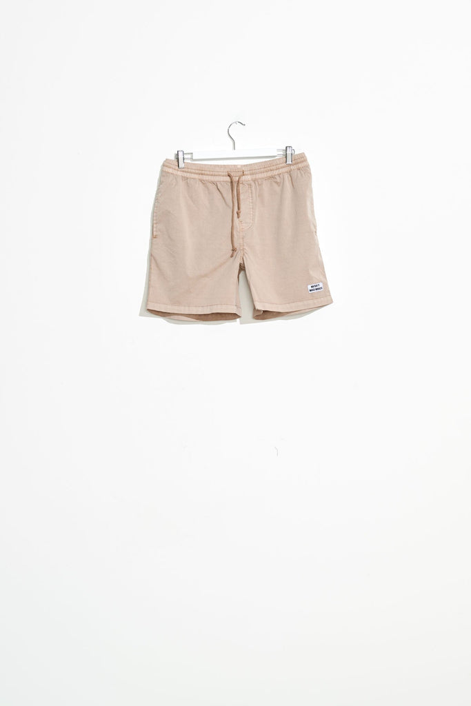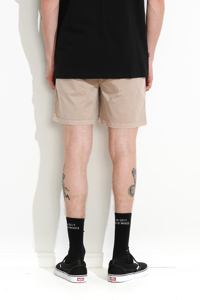 Misfit Shapes 'Cotton Suspended Particle 17'' Short' in Pigment Tan features woven label at left hem, elasticated waist with drawcord, front in-seam pockets & back welt pocket with woven label. Constructed from a Cotton fabrication & finished with premium trims.