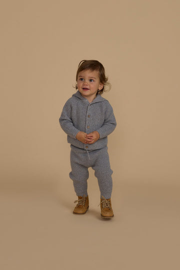 Made from a soft fabric with intricate honeycomb knit pattern in a relaxed fit. The gable pant features ribbed trim at the waistband and leg openings. Faux tie detail at center front.