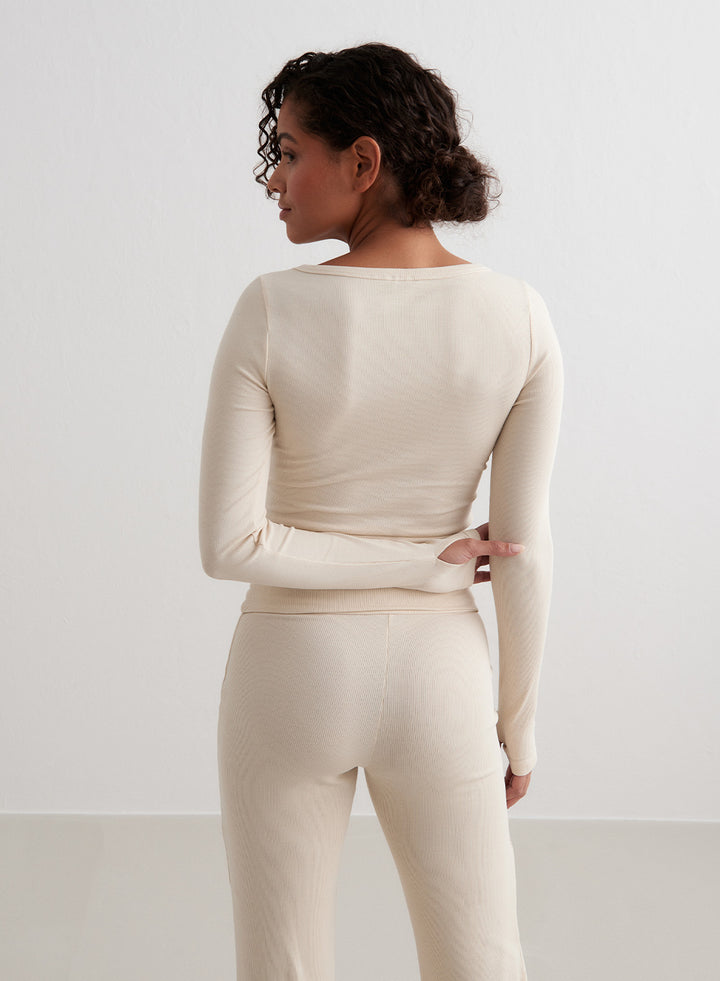 The ultimate long sleeve for lounging, traveling and comfort 24/7! Made from a super-soft cotton blend, Aimn's Ease Ribbed Long Sleeve Top has a tight fit, features a lightweight, ribbed fabric and a slightly shorter length. Match with our Ease Ribbed Pants or Ease Ribbed Shorts to create the perfect loungewear set.
