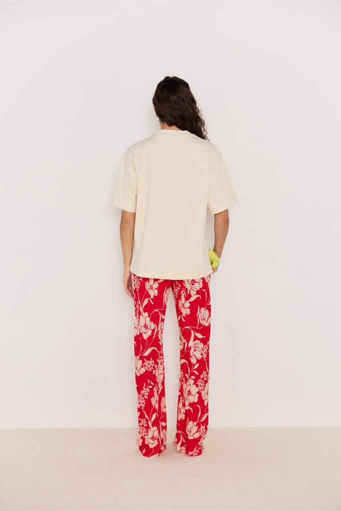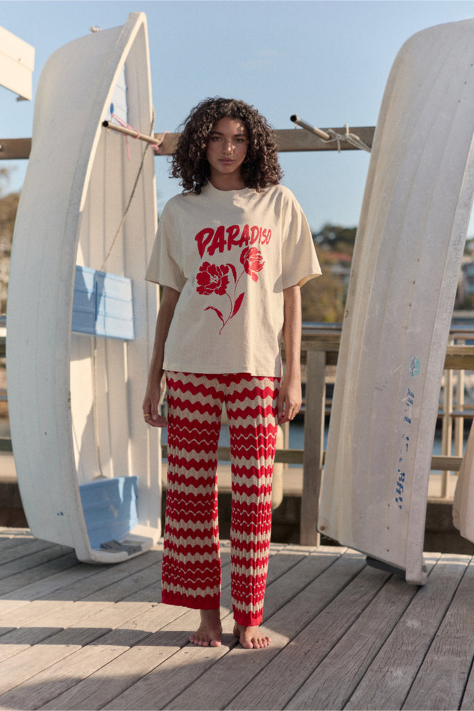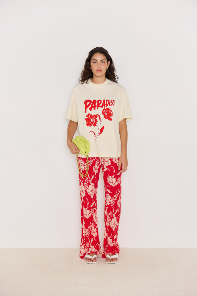 Say it loud with the Paradiso Oversize Tee - your go-to statement graphic tee for effortless off-duty style. Made from soft 100% cotton, this relaxed fit tee features a bold red "Paradiso" floral print on a creamy base that pairs perfectly with everything from denim to prints.