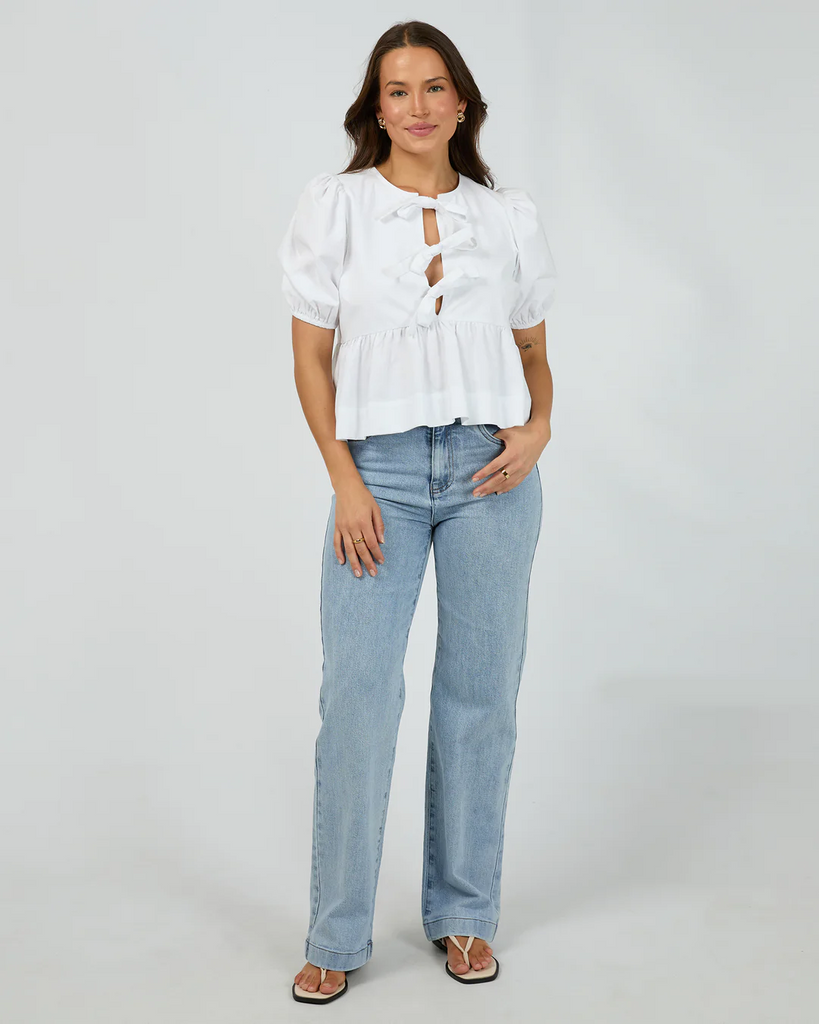 Meet your new desk to dinner top, introducing the Aftersun Linen Top. Made from a soft but structred linen blend this top features a puff elasticated sleeves with bow details down center front. Pair back with your favourite jeans and be ready for wherever the day takes you.