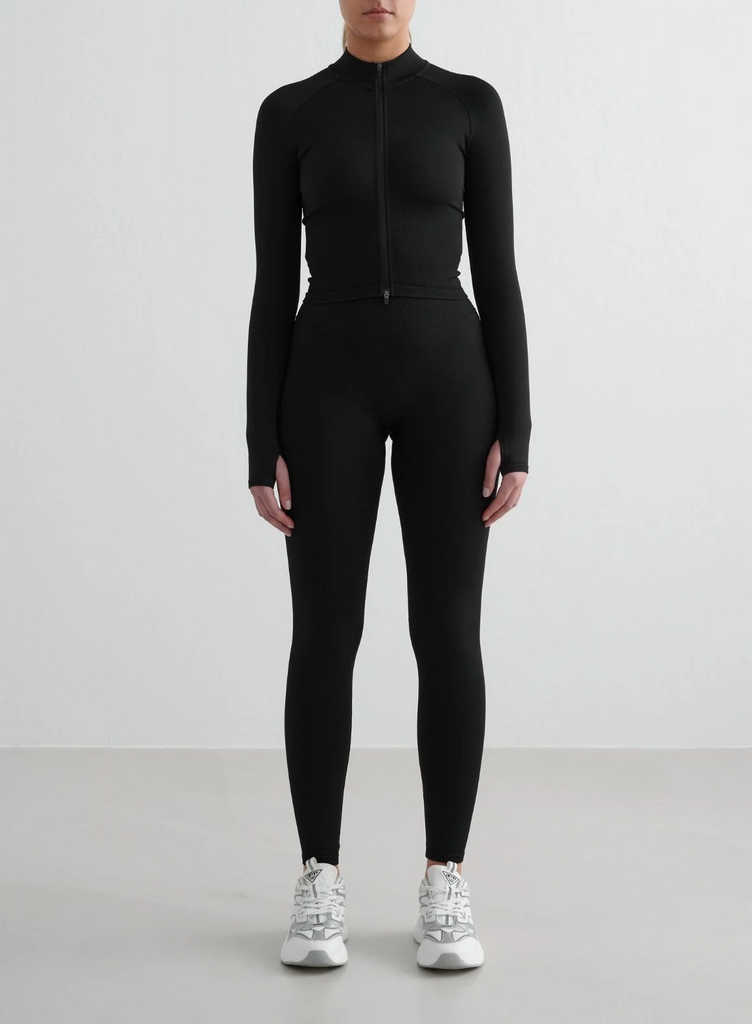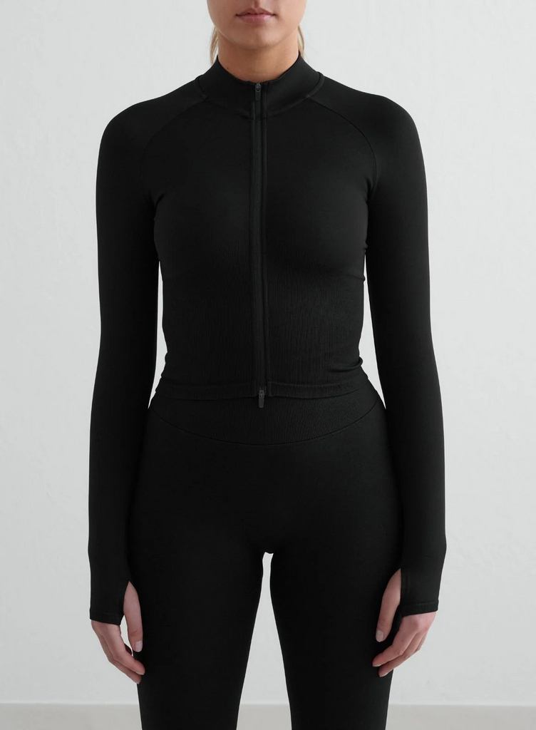 The Shape Seamless Zip Jacket is crafted from a soft, stretchy, and breathable seamless fabric. This figure-hugging jacket offers a second-skin feel and is ribbed underneath the bust for a contouring effect. The zip jacket features thumbhole sleeves and a full-length zip. The long sleeved jacket has a grown on collar and a rubber aim’n logo at back. Pair with Shape Seamless Tights or Hotpants to create a matching activewear set.